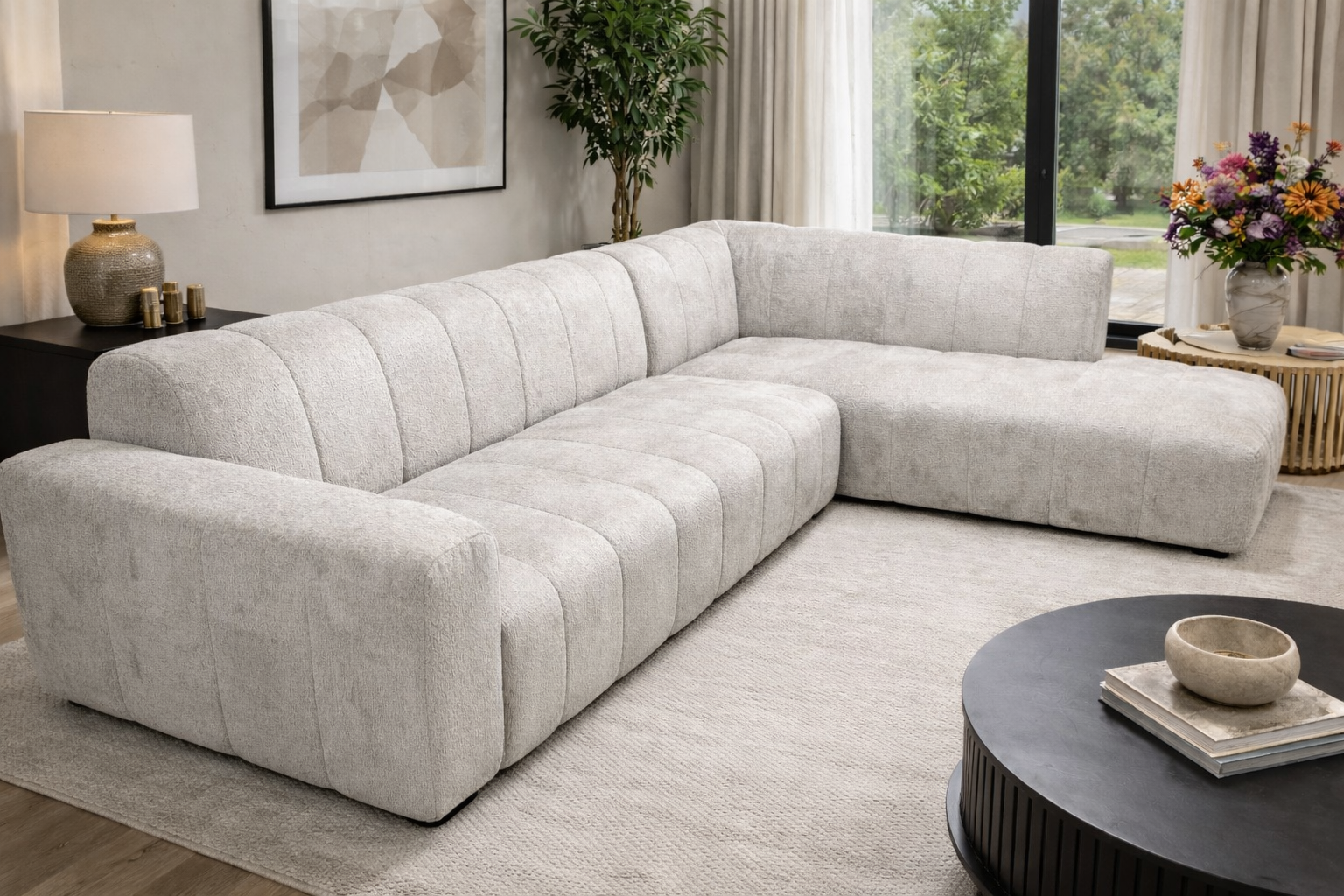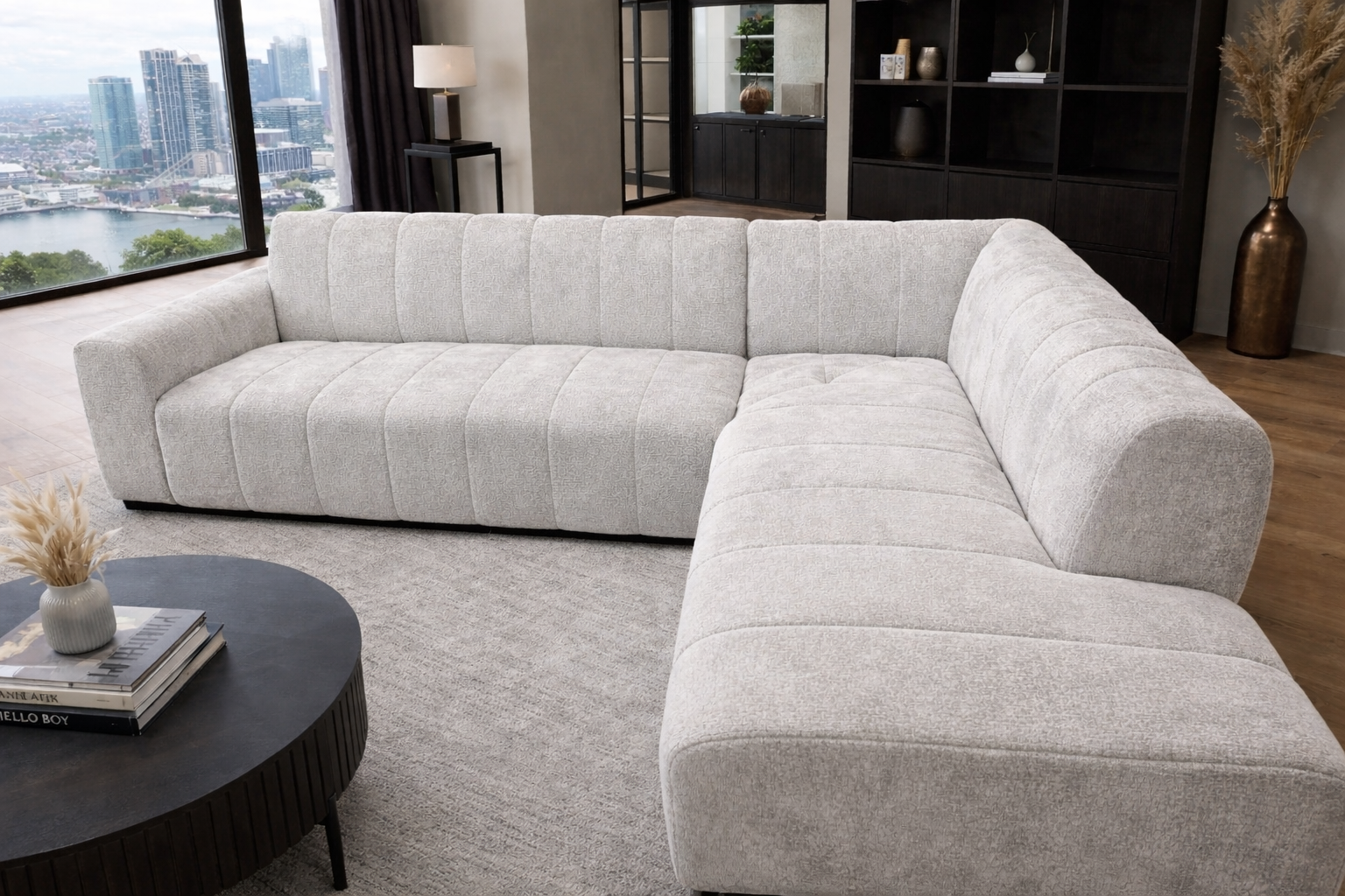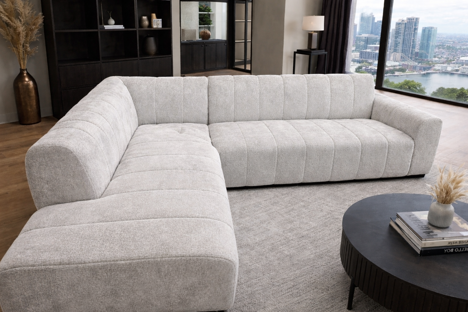 Onze nieuwe modulaire voorraadbank combineert comfort en design De zachte, hoogwaardige bekleding in een moderne lichtgrijze tint zorgt voor een luxe uitstraling.