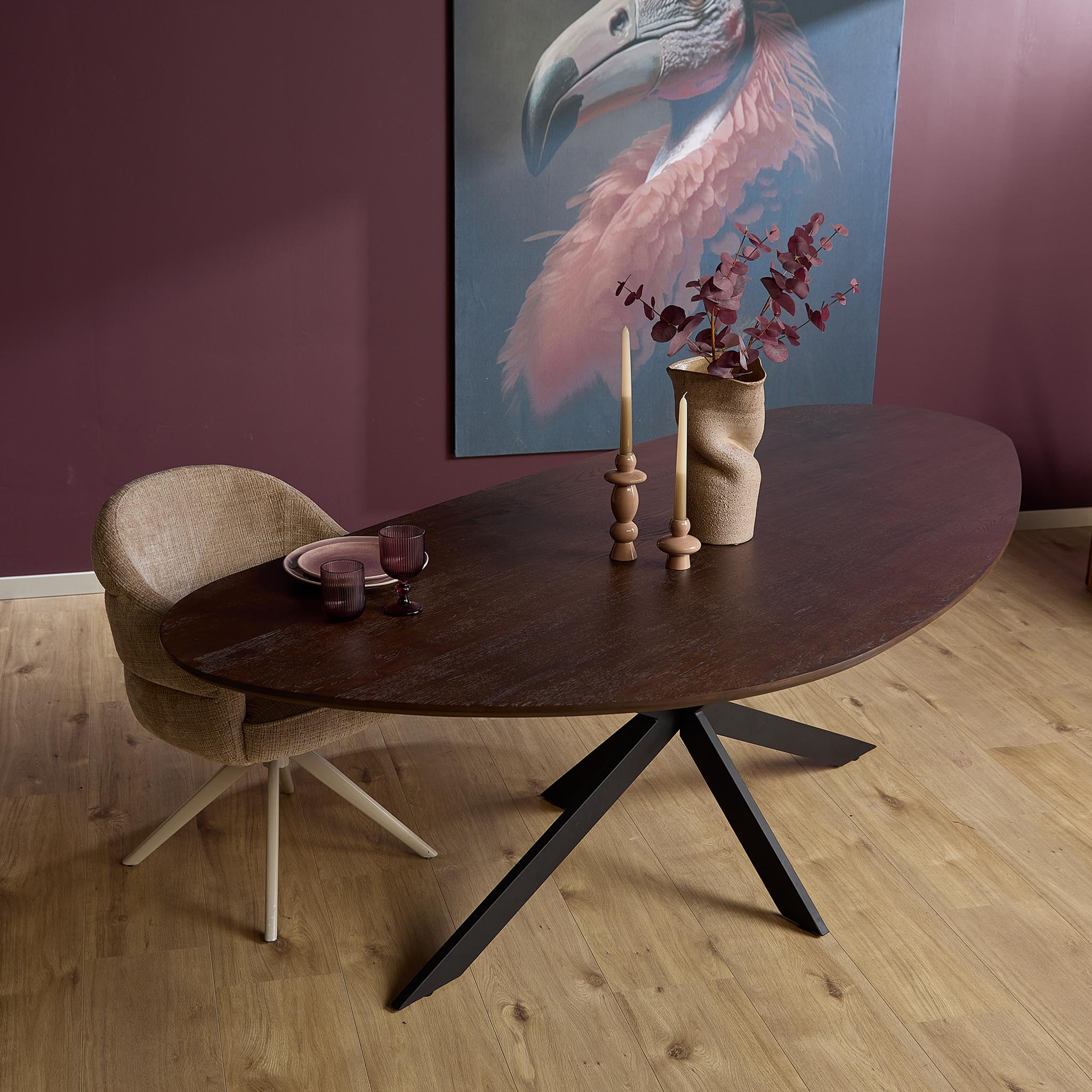 Geef je eetkamer een eigentijdse upgrade met de Cloud eettafel. Het organisch gevormde tafelblad van hoogwaardig eiken in de kleur bruin straalt warmte uit, terwijl de elegante zwarte matrixpoot zorgt voor een stoer contrast, deze combinatie maakt de Cloud tot een echte blikvanger in ieder interieur.