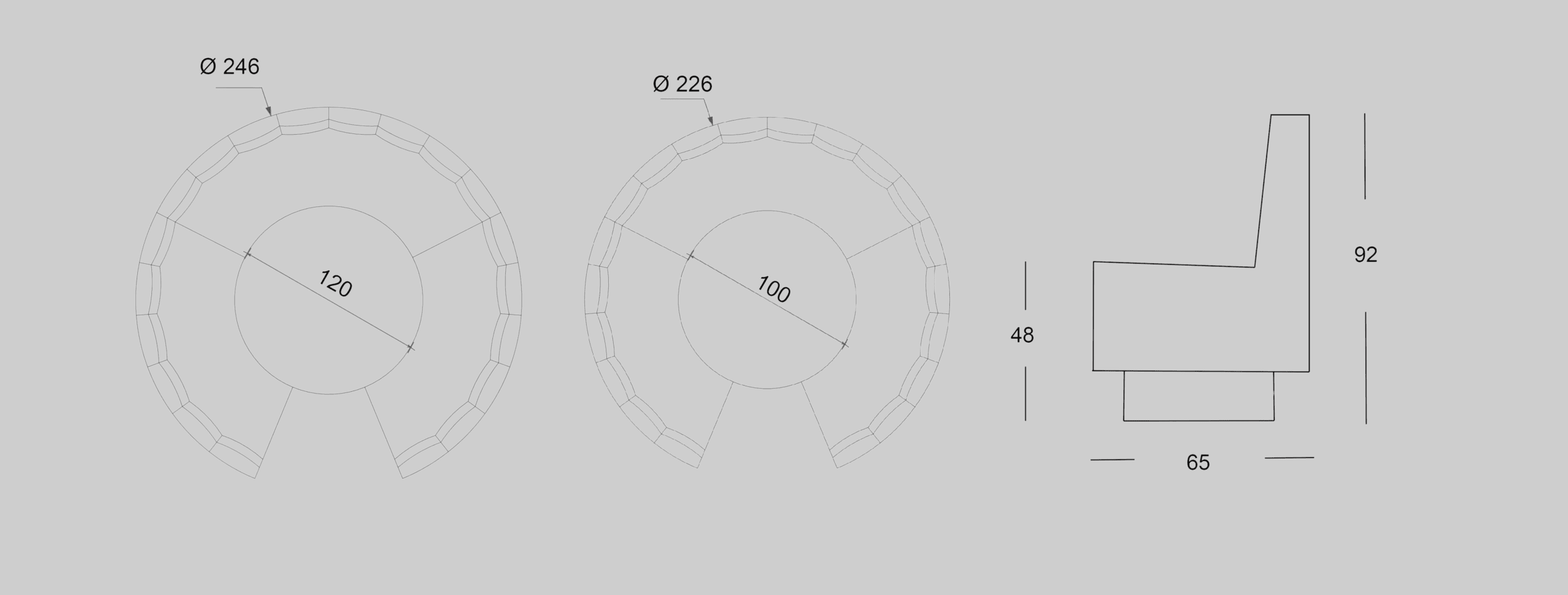 De eetkamerbank Round luxe is een uniek, modulair ontwerp dat direct de aandacht trekt. Dankzij haar ronde vorm past ze perfect in uiteenlopende interieurs en vormt ze een stijlvolle blikvanger in elke ruimte. Ideaal voor eetkamers, luxe restaurants of sfeervolle lounge- en relaxzones.