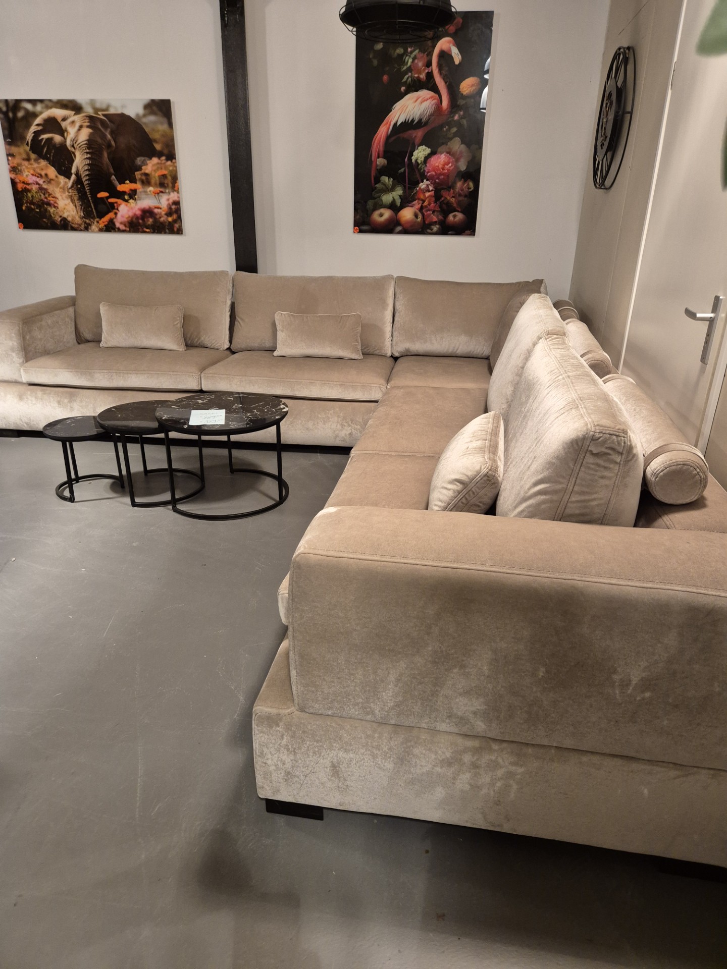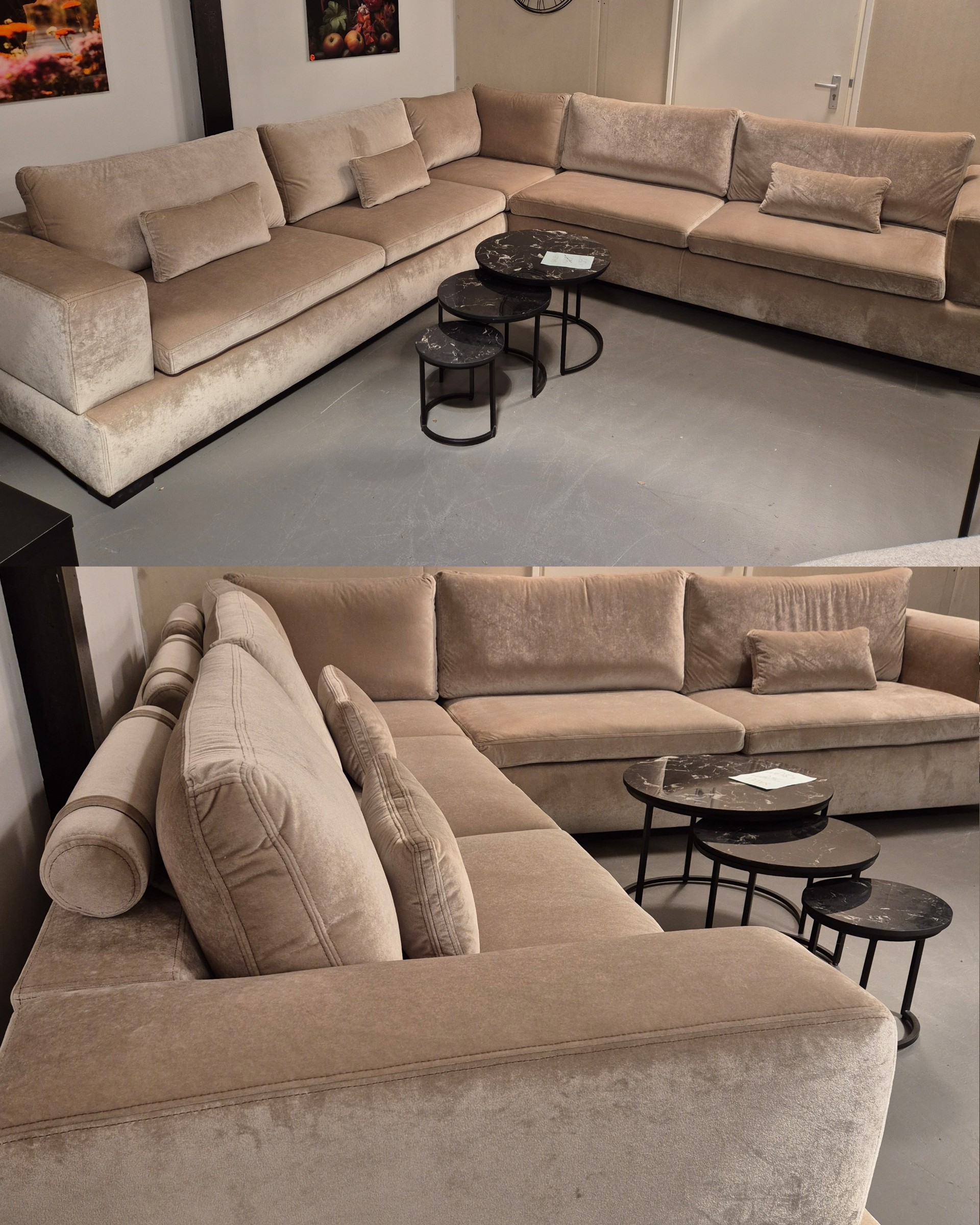 Dankzij de zachte velvet stof en royale afmetingen biedt deze hoekbank ruimte voor het hele gezin of gezellige avonden met vrienden.
