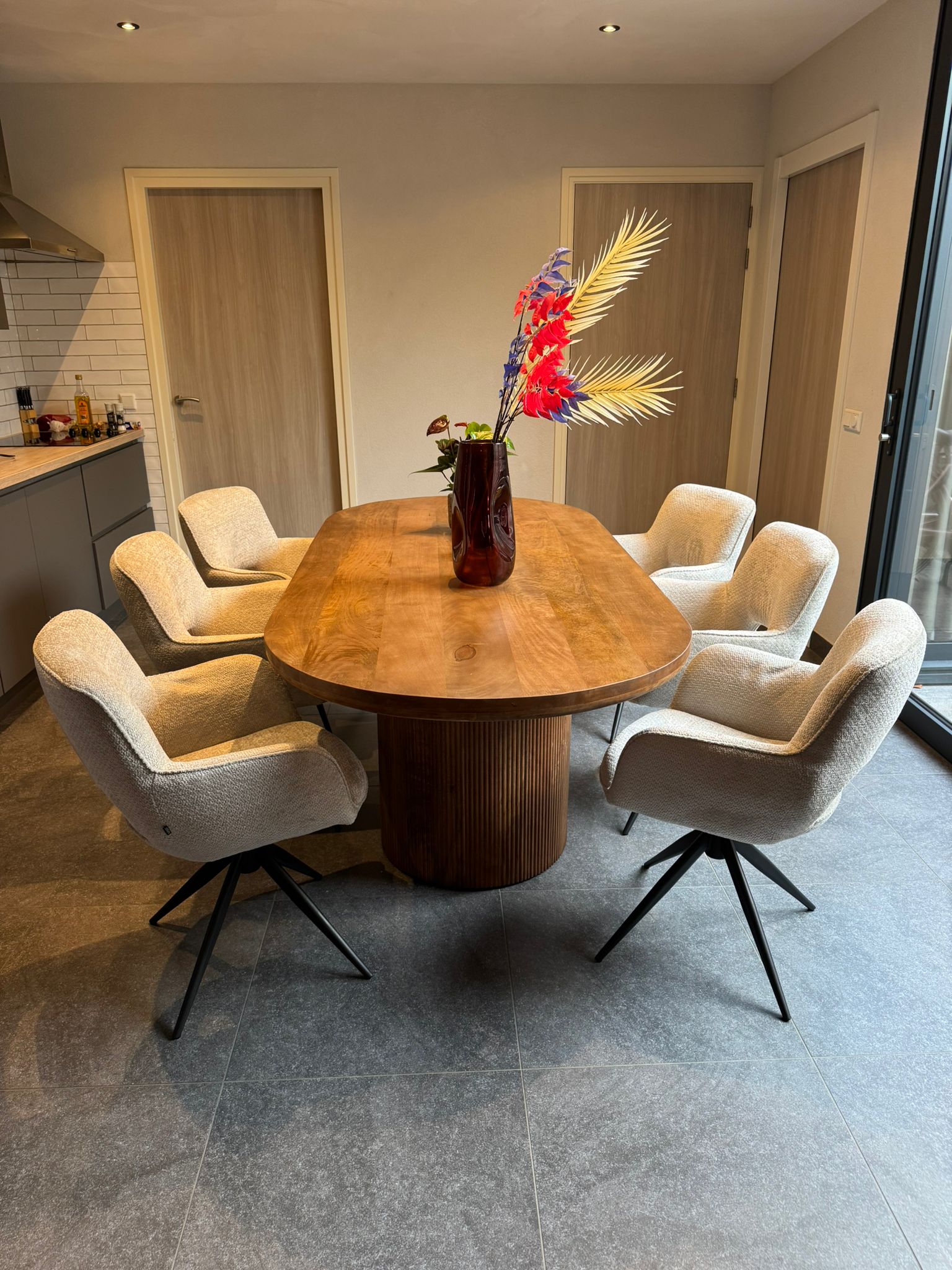 Omdat mangohout een natuurproduct is, heeft elke tafel zijn eigen unieke karakter. Knoesten, kleurnuances en kleine oneffenheden maken deel uit van de charme en authenticiteit van het hout — ze zijn geen gebreken, maar juist tekenen van vakmanschap en natuurlijkheid.