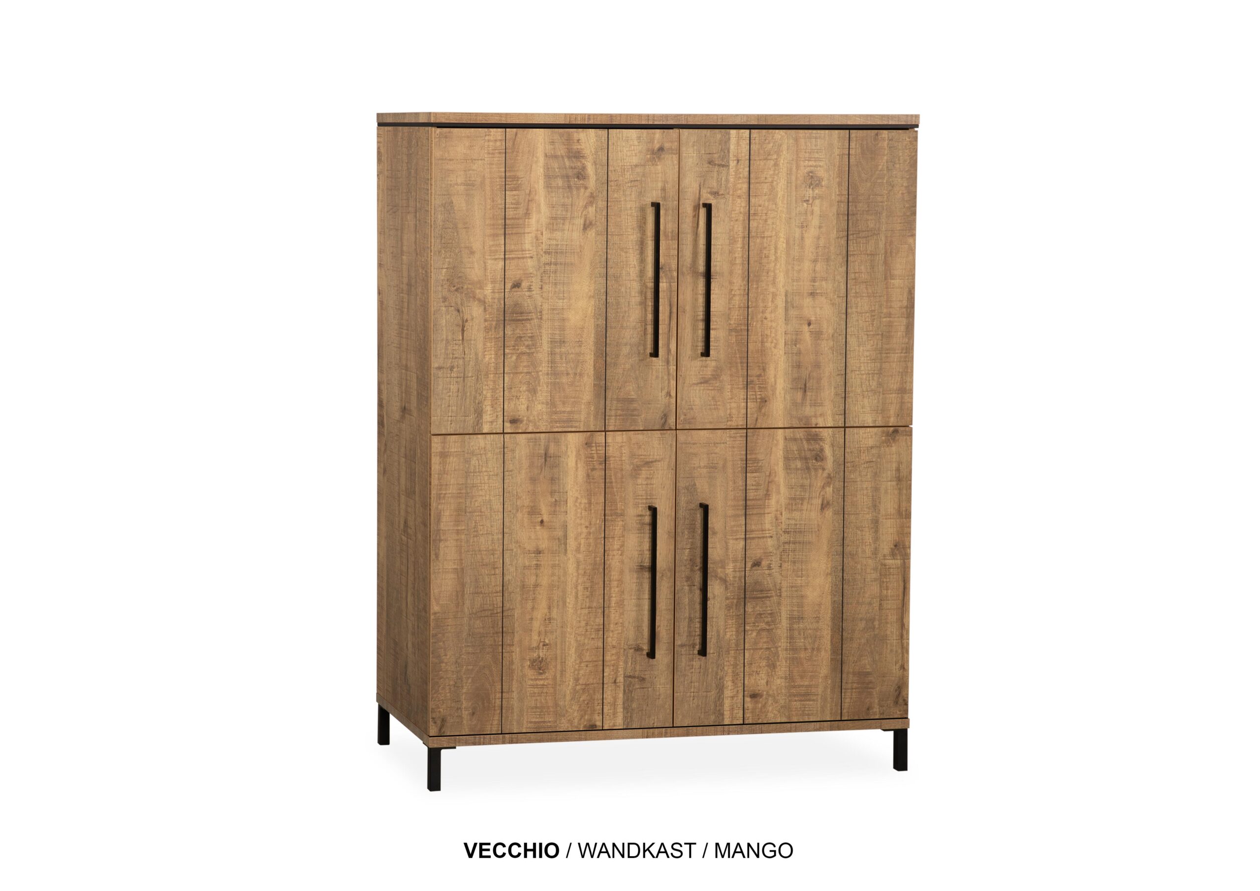 Maak kennis met de vecchio wandkast, onderdeel van het complete vecchio woonprogramma. Dit meubel is voorzien van vier deuren met legplanken ideaal wanneer je veel opbergruimte nodig hebt
